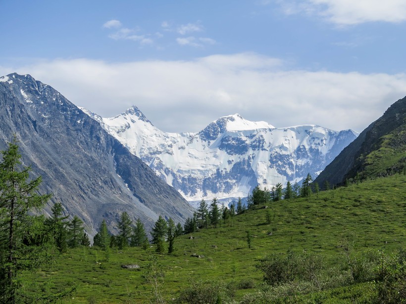 Гора Белуха, названная так из-за своего снежного покрова, это высшая точка Алтая (4509 м).