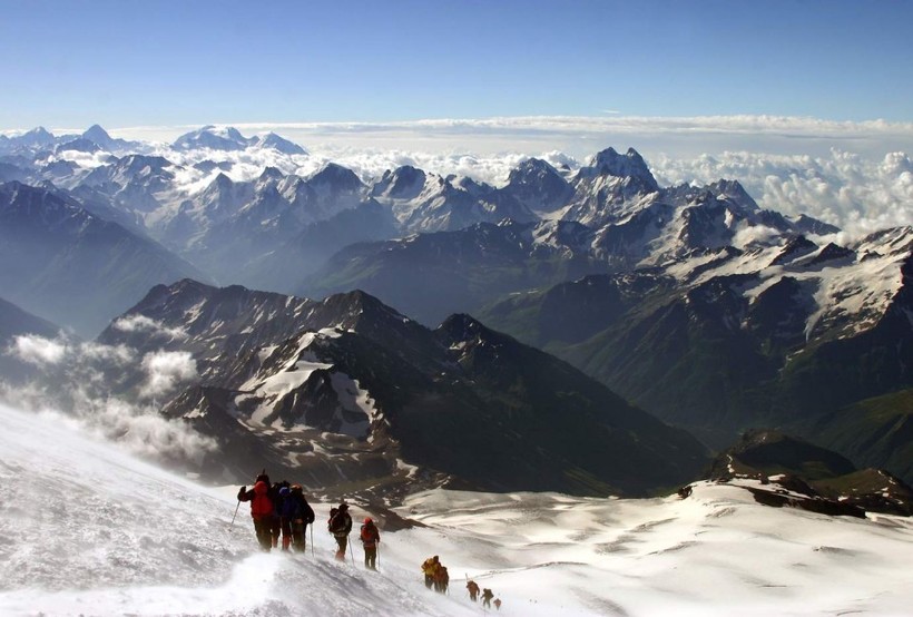 Эльбрус — самая высокая вершина не только России, но и Европы. Это спящий вулкан, который извергался последний раз в 50 году до н.э. Эльбрус имеет 2 вершины высотой 5642 и 5621 м. Впервые высокую вершину покорили в 1874 году, а восхождение на меньшую вершину совершили 45 годами ранее. Конечно, это было непросто. Группы состояли из большого числа первопроходцев и сопровождающих, и многим не удалось завершить этот поход из-за недостатка снаряжения, неопытности и тяжелых погодных условий.