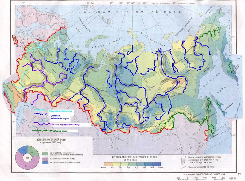 Большинство рек протекающих по территории Российской Федерации (перечислю все реки, длина которых превышает 500 километров):