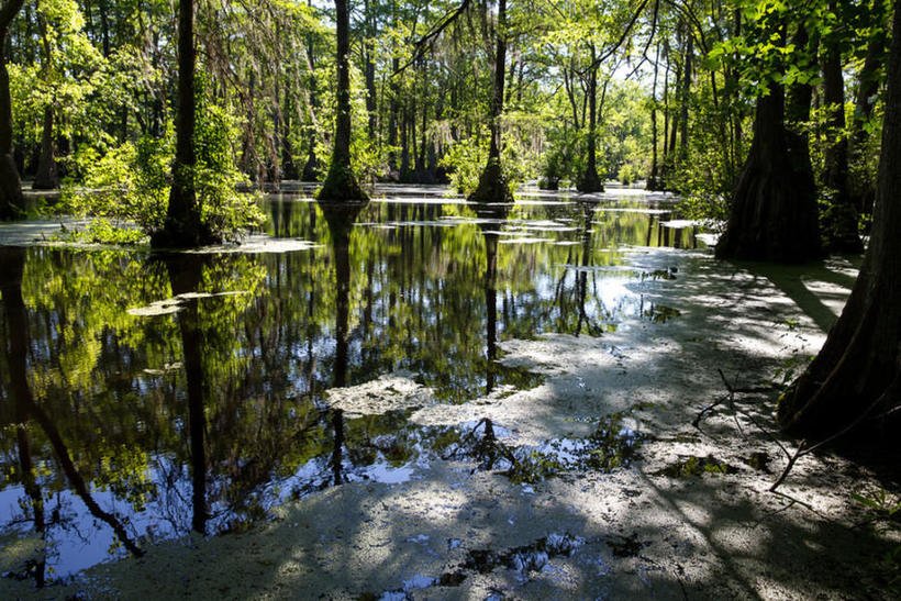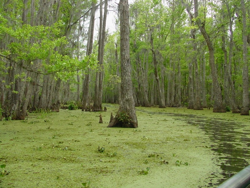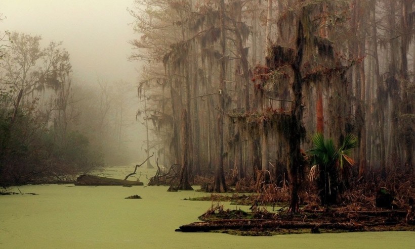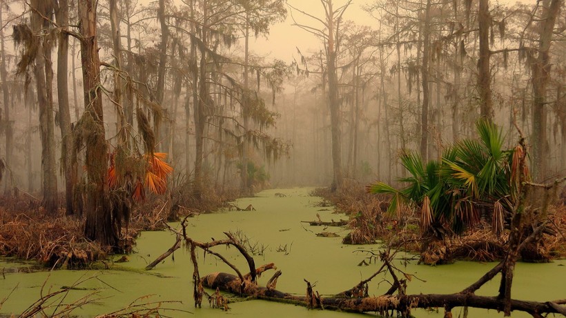 - Мрачное болото в США. Очень красивое болото, недалеко от этих мест люди ставят палатки и наслаждаются видом на трясину.