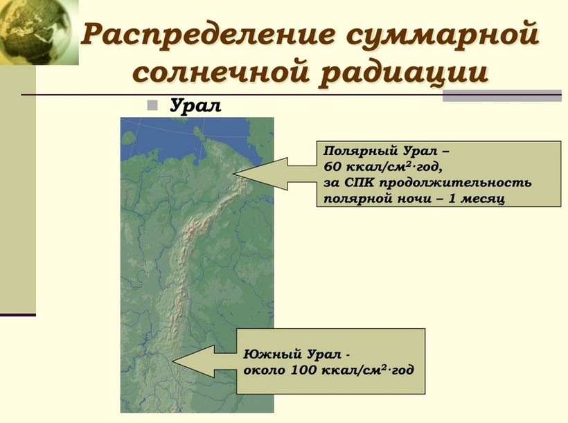 Насколько я помню, солнечная радиация в Уральских горах распределяется неравномерно и большую часть получают Восточные склоны, они же Южное Зауралье. На то есть множество причин: от местного рельефа до преобладающей облачности. Более подробно расскажу ниже.