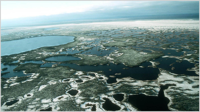 Заболоченность, непроходимость равнины заставляют вести работы по изъятию ресурсов в зимнее время, когда поверхность промерзает.