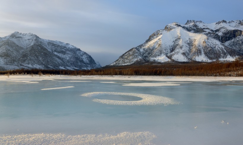 Толщина получившегося при этом ледяного покрова напрямую зависит от того, сколько воды замёрзло: чем её было больше, соответственно, тем больше и льда будет.