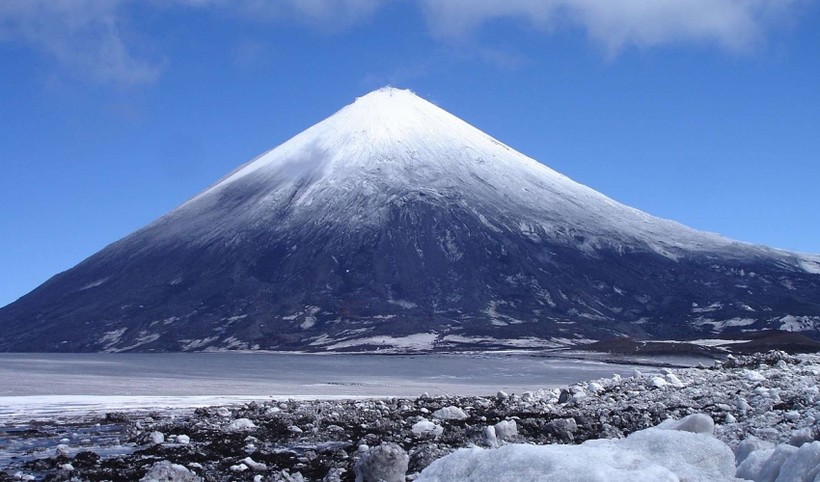 - Ключевскую Сопку — высота 4760 м, диаметр кратера — 550 м. За последние 2 века извержения случались 59 раз.