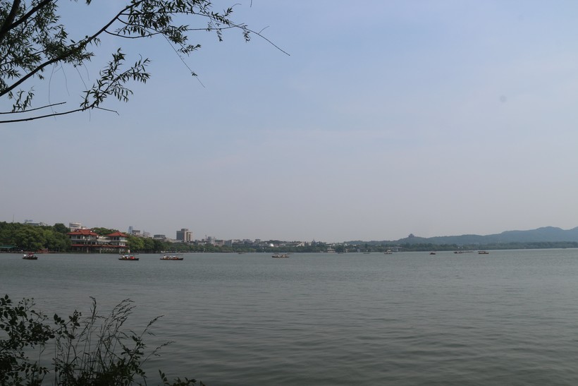 Само озеро огромное и небывалой красоты. Шанхай - огромный мегаполис из уймы высоток, а тут я попала просто в рай зеленый, где одна природа и лишь на дальнем конце озера виден был город.