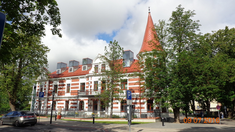 - Здание нового замка. Оно стоит совсем рядом с орденской крепостью, и, несмотря на матерую толстую башню, заметно контрастирует со средневековой твердыней. Кстати, в Сигулде, куда я тоже выезжал из Риги в тот раз, наблюдается похожая история: рядом с замком Зегевольд находится здание дворца, построенного веке в XIX и имеющего некоторые замкоподобные черты. Сегодня в здании музей, но так как я приехал в понедельник, он не работал.