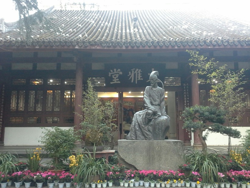 По китайским городам, особенно провинциальным и небольшим, не всегда приятно гулять, но о Чэнду я такого сказать не могу. Здесь время от времени встречаешь уютные парки, улочки, районы. Я сама, гуляя вдоль реки Цзиньцзян, наткнулась на территорию парка-музея поэта Ду Фу. Я читала про эту хижину, но сомневалась – идти туда или нет, поскольку я (как и большинство туристов, мне кажется) понятия не имела, что это за поэт, и есть ли смысл посещать его музей. Но, подойдя поближе, поняла, что хотела бы зайти, и не пожалела. Я попала на очень приятную, ухоженную территорию сада-парка с маленькими прудиками, каналами, хижинами. Несмотря на людей, перемещающихся и делающих фотографии почти во всех локациях, я смогла поймать ощущение уединения. Вход на территорию платный, но цена невысокая.