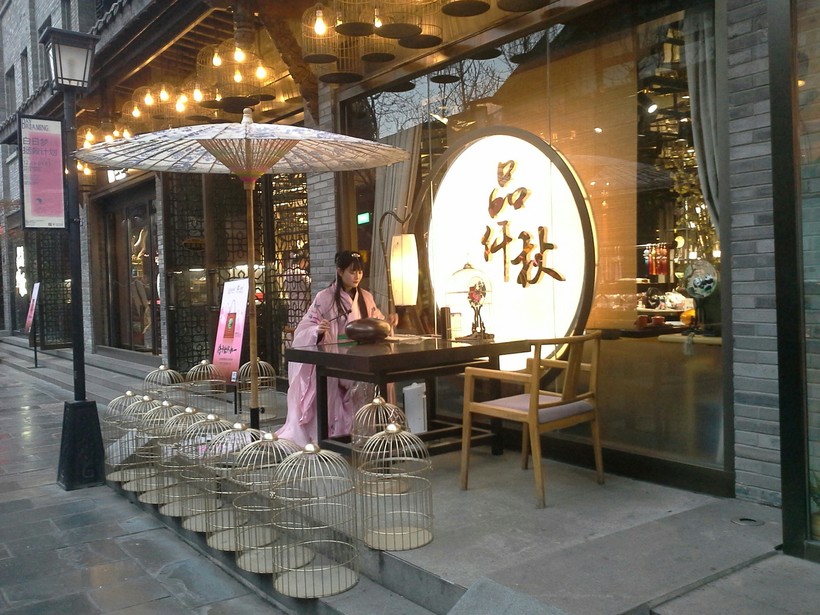 Для любителей старинных, уникальных вещей советую посетить что-то вроде блошиного рынка, на который я наткнулась случайно, и где провела, наверное, час или больше, поскольку сама предпочитаю такие рынки обычным магазинам и бутикам. Здесь есть посуда, предметы интерьера, старые марки, монеты и подобные вещицы. Называется место так: Songxianqiao Curio Art City, недалеко от дома поэта Ду Фу.