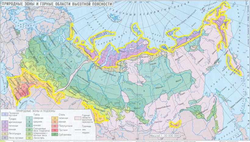 «Лесное пятно» на карте занимало около половины равнинной территории. Если отнять от остатков переходные зоны лесотундры и лесостепи, то на безлесные просторы остаётся порядка 10% земель. На этой скромной площади сформировались такие природные зоны: