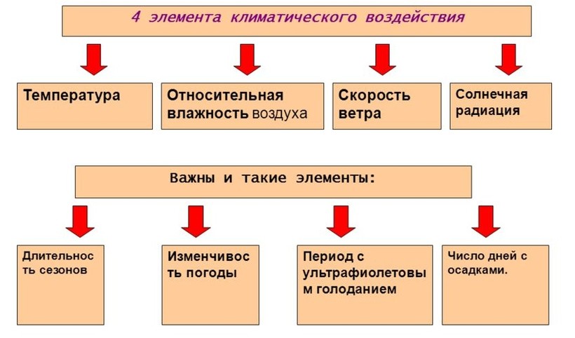 1. Температурный режим, в том числе разница между температурой зимой и летом, а также ночные и дневные перепады температуры.