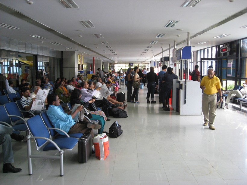 - попали в переполненный зал с пассажирами, вылетающими по Индии.