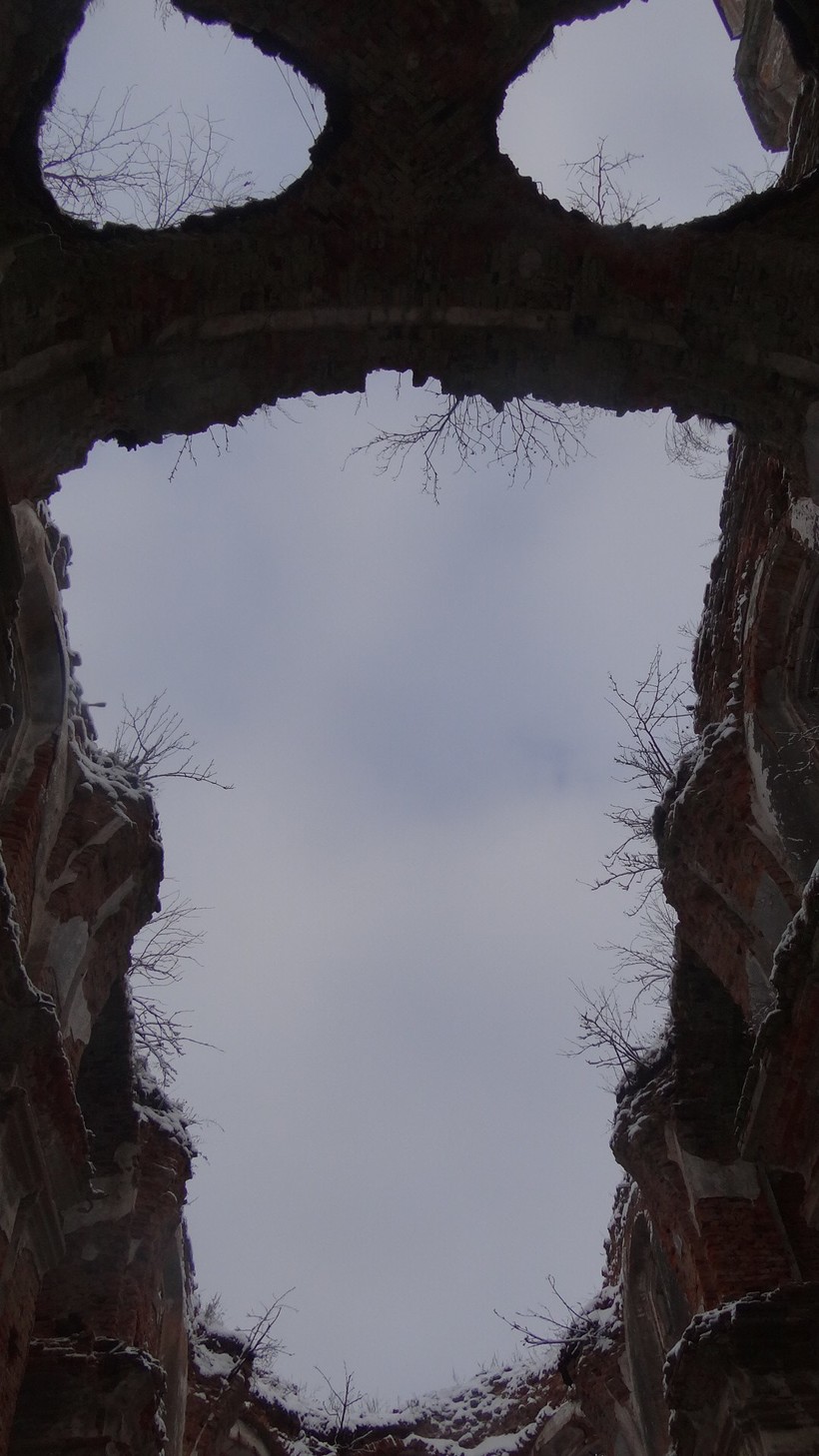 - Достопримечательности в окрестностях. Это как раз те самые обещанные руины. Находятся они в деревеньке Смоляны, которая находится километрах в 25 от Орши, если ехать по Р-15. Там стоит одинокая полуразрушенная башня замка Белый Ковель, руины православной Алексеевской церкви, но самым атмосферным мне показался костел Девы Марии. Кстати, есть мнение, что это ближайший от Москвы костел в стиле барокко. Остов этого здания смотрится мощно и слегка жутковато, особенно если зайти на территорию и посмотреть вверх. И это тот случай, когда именно в руинах здание смотрится наиболее атмосферно, так что я бы не хотел, чтобы его отстраивали заново — пусть лучше костел остается законсервированным. На этом фоне даже немного меркнет тот факт, что в Смолянах есть еще действующая деревянная Спасо-Преображенская церковь XVIII века, вылизанная, как и большинство исторических построек на территории Беларуси.