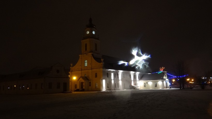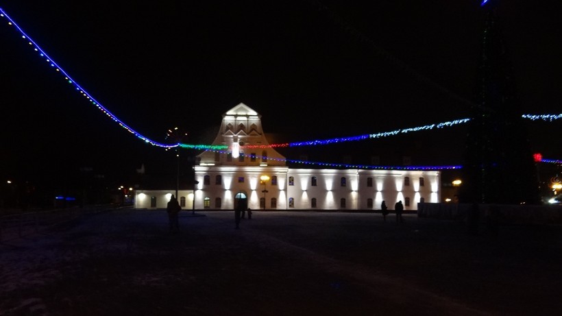 - Иезуитский коллегиум. Это главная и наиболее крупная из достопримечательностей Орши. Комплекс, который легко можно спутать с монастырем или ансамблем ратуши, на самом деле был учебным заведением. Так как в Оршу я приехал уже вечером (а зимой темнеет рано), то имел возможность полюбоваться подсветкой здания. Внутрь я попасть особенно не пытался, но все же это сделал, когда зашел поужинать в кафе «Замковое». Впрочем, об этом ниже. Что же касается здания коллегиума, то я лишний раз отметил, как в Беларуси бережно относятся к памятникам архитектуры. Если здание представляет историческую ценность, как правило, оно идеально вылизано, даже если стоит посреди маленькой провинциальной деревушки. Впрочем, живописные руины в Беларуси тоже имеются, и о них я сегодня тоже упомяну.