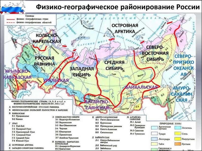 - природный признак — физико-географическое деление (Дальний Восток, горы Южной Сибири и т.д.);