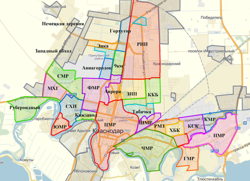 Несколько лет назад я решила перебраться из Сибири поближе к морю. Выбор пал на город Краснодар. В Краснодаре я ни разу не была и естественно не имела ни малейшего представления, где мне поселиться. Открыв карту города, я увидела множество разноцветных геометрических фигур с забавными названиями — ФМР, ЮМР, Энка. Я стала изучать особенности каждого района и обнаружила, что районирование города – увлекательный и очень полезный процесс. Мне стало интересно заглянуть в его суть, и я обратилась к словарям, и географическим журналам.