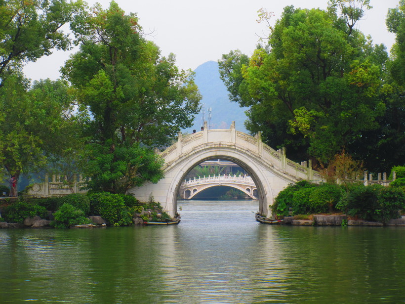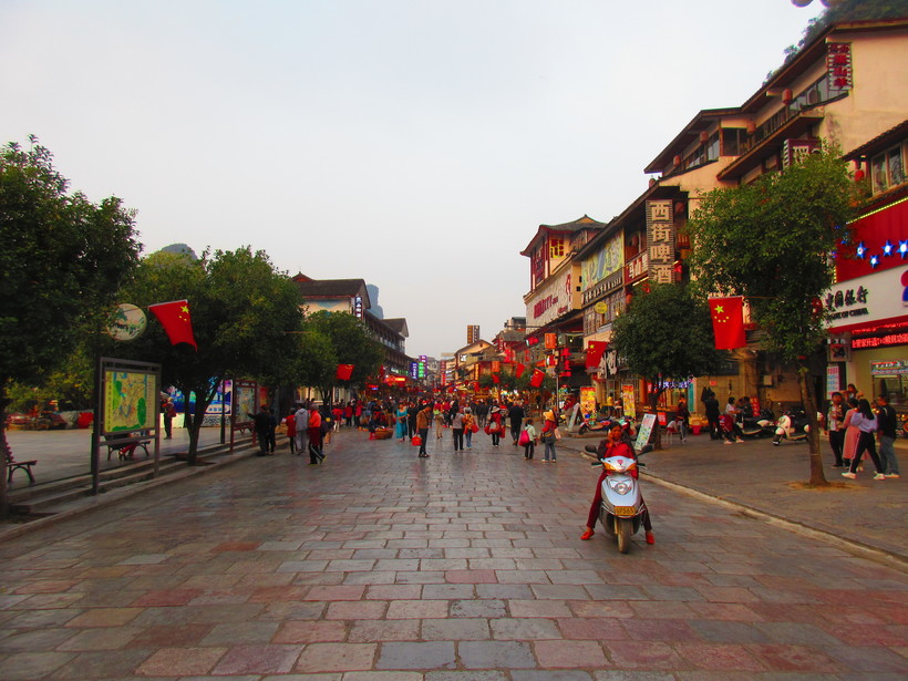 Центр Гуйлиня, вообще напоминает одну большую ярмарку, куда не сунься к тебе обязательно подбежит китаец и на ломаном английском (в лучшем случае) будет пытаться тебе впарить что-нибудь. Самым забавным было общение с теми, кто совсем не знает английский и всё равно называет туристическое место, а затем начинает крючить пальцы (пытаясь показать цифры). Вы бы видели их девятку. :) Но стоит выбраться из центра, как начинаешь наслаждаться поистине красивым городом с дружелюбными местными жителями.