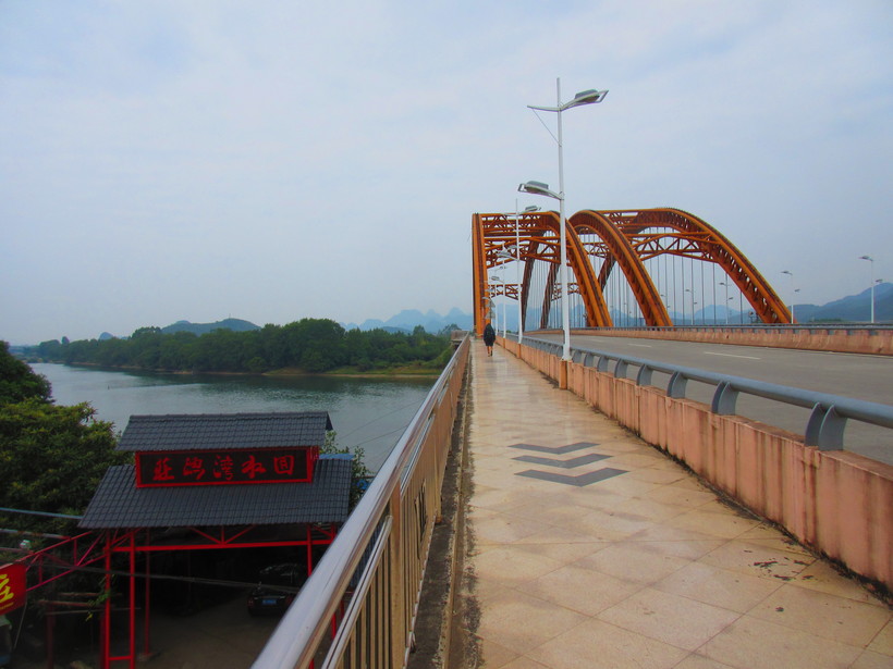 По утру мы решили ехать автостопом до Яншо. Сели на автобус до шоссе, ведущего в нужном нам направлении. На конечной остановке высадились, пересекли мост через реку Линзян.