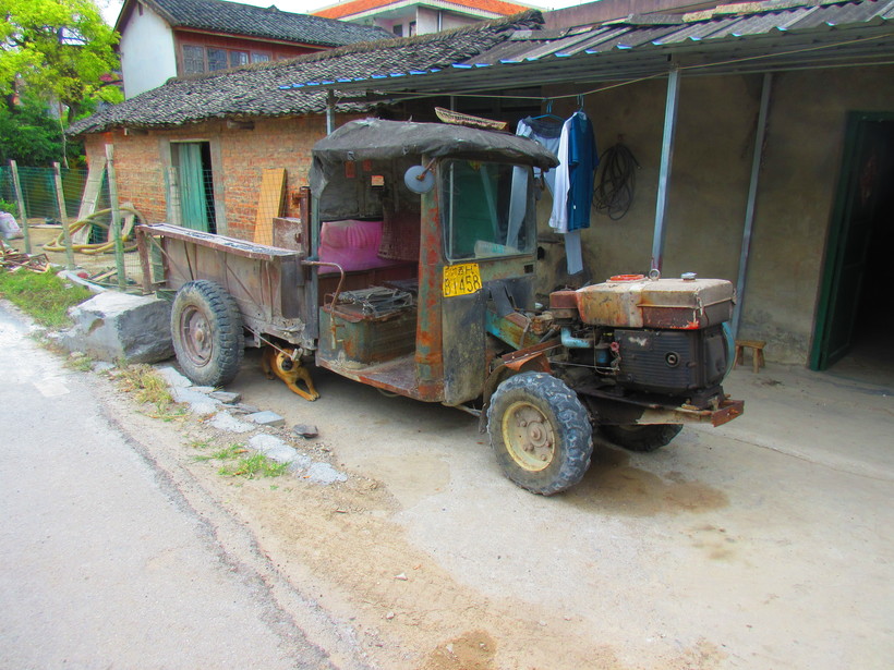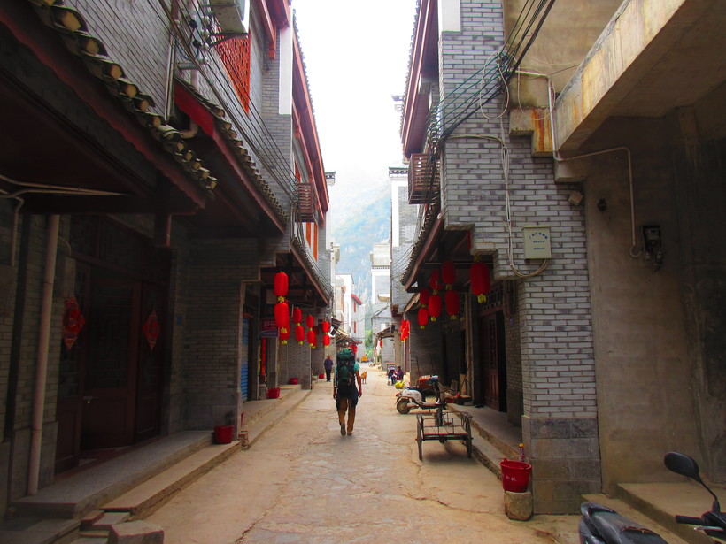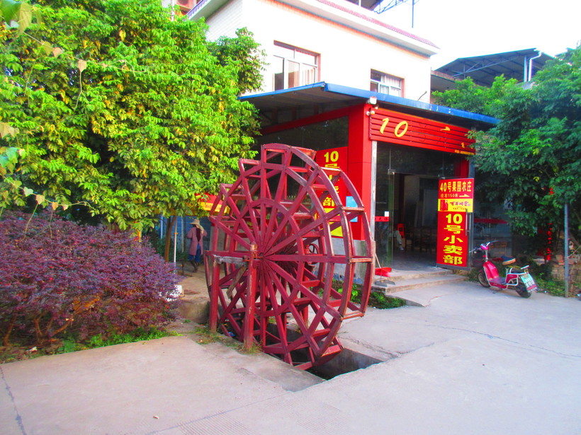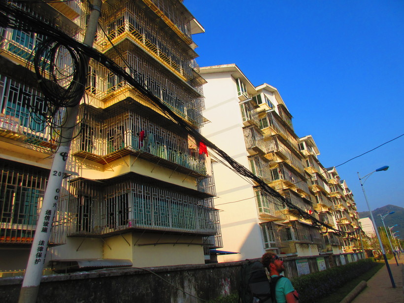 Трасса оказалась огороженной, совершенно не доступной для автостопа, ведь на ней даже обочины нет. Пришлось возвращаться обратно. Добравшись до моста, друг заметил на карте, через малую речку от нас, туристическое место - поселок Дасю (Daxu). Мы решили дойти до переправы, благо она была недалеко. Путь лежал через интересный поселок, название мы так и не узнали.