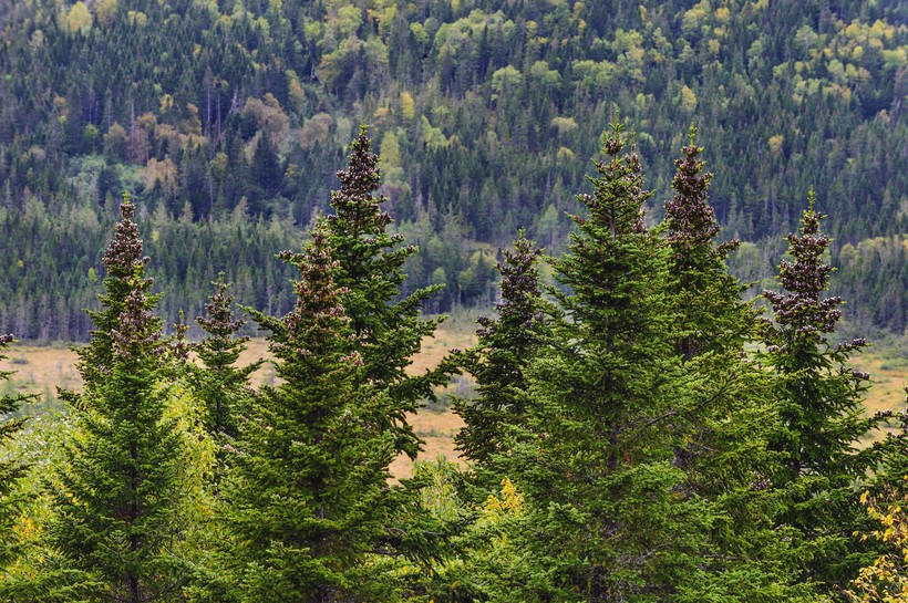 С продвижением на север (Полярный Урал) картина немного меняется: на западе встречается пихта, берёза, а на востоке — ель и лиственница.