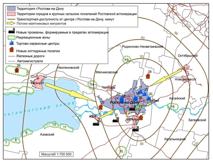 2. Усиливаются маятниковые миграции в сторону центра агломерации. Появляется единый рынок труда.