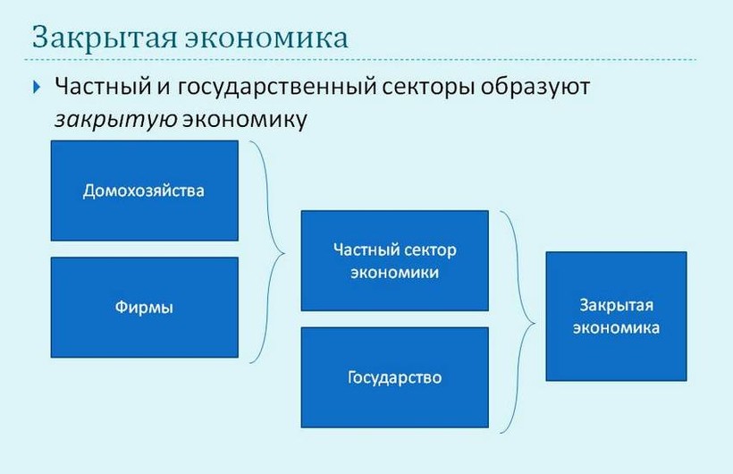 Преобладание в системе воспроизводства только государственного и частного сектора ведет к созданию закрытой экономики.