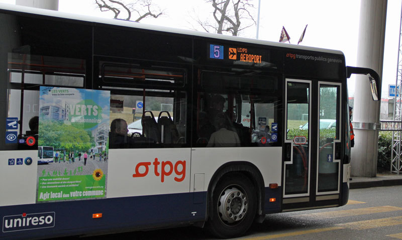 Оба троллейбуса отправляются от остановки, расположенной на уровне регистрации. Троллейбус №5 идет в Женеву до центрального вокзала, до остановки «Cornavin». Правда, время в пути займет немножко дольше, чем даже на автобусе, ехать придется минут 15. Троллейбусы отправляются каждые 7 минут.