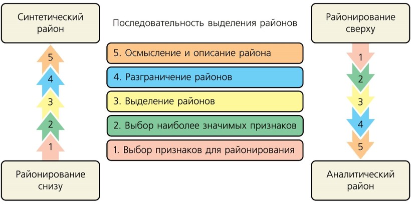 Это мысленное разделение территории (акватории) на некие внутренние области, сами по себе однородные по какому-либо признаку, однако различающиеся между собой. Мысленное — потому что фактически существующие, например, границы государств весьма часто не совпадают с границами районирования.