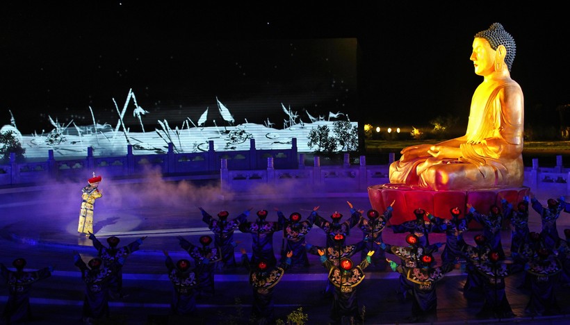 Вечером второго дня мы решили пойти на местное представление, рассказывающее историю основателя города (鼎盛王朝康熙大典实景演出). Билеты не из дешевых, примерно 250 юаней, но сходить однозначно стоит, шоу очень эффектное. Представление проходит на открытом воздухе, а масштаб сцены и стиль повествования сильно впечатляют. Плюс имеются английские субтитры, если вдруг захочется узнать, о чем именно идет речь.