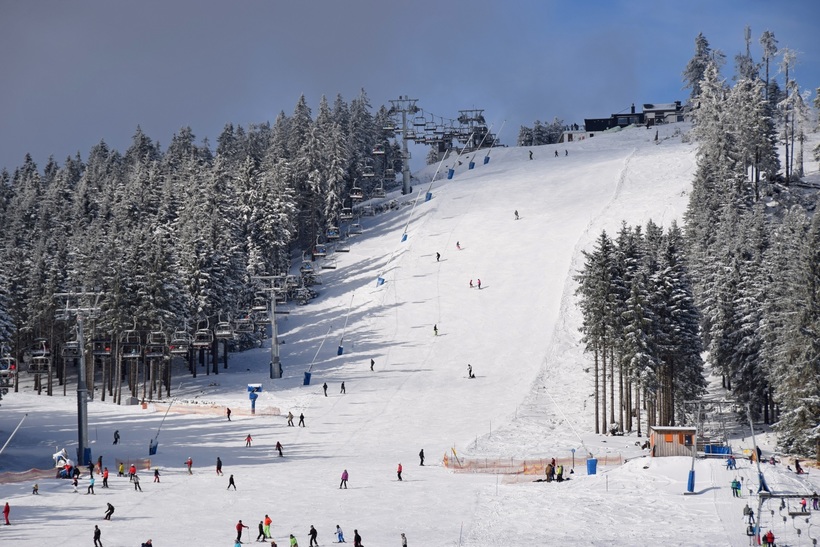 Лыжные трассы, как и полагается горнолыжному курорту, оборудованы подъемниками.