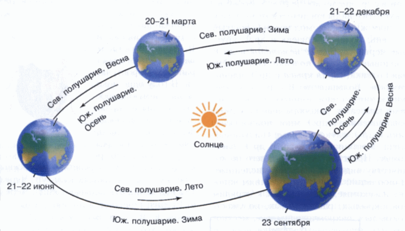 Помимо вращения вокруг Солнца, известно, что Земля вращается и вокруг себя. Вот и выходит, что она под наклоном меняет свое положение относительно Солнца, которое в свою очередь прогревает участки Земли с разной силой.