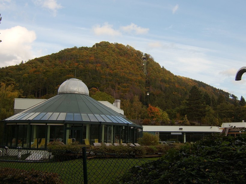 Меня очень впечатлила гора, на которой находятся остатки старой крепости. На гору можно подняться на фуникулере, а кроме развалин крепости по которым можно полазить, с нее открывается потрясающий вид на окрестные горы и населенные пункты – с одной стороны виден Бад Гарцбург, с другой можно увидеть Гослар. Вообще, в названии города скрыто его краткое описание: Бад – термальные источники (бассейн), Гарц – название гор, бург – крепость.