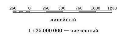Численный масштаб от линейного отличается по нескольким признакам. Во-первых, численный масштаб записывается дробью, в которой числитель - единица, а знаменатель - число, показывающее, во сколько раз уменьшили размер местности на карте, а линейный - отрезок, разделенный на равные части со значениями, которые соответствуют расстояниям на местности. Во-вторых, численный масштаб используется для краткой записи, а линейный - для измерения расстояния циркулем.