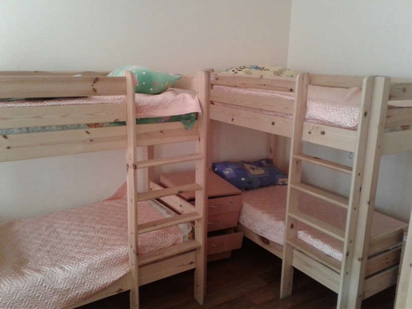 - Двухъярусные кровати для сна, у каждой кровати тумбочка для вещей.