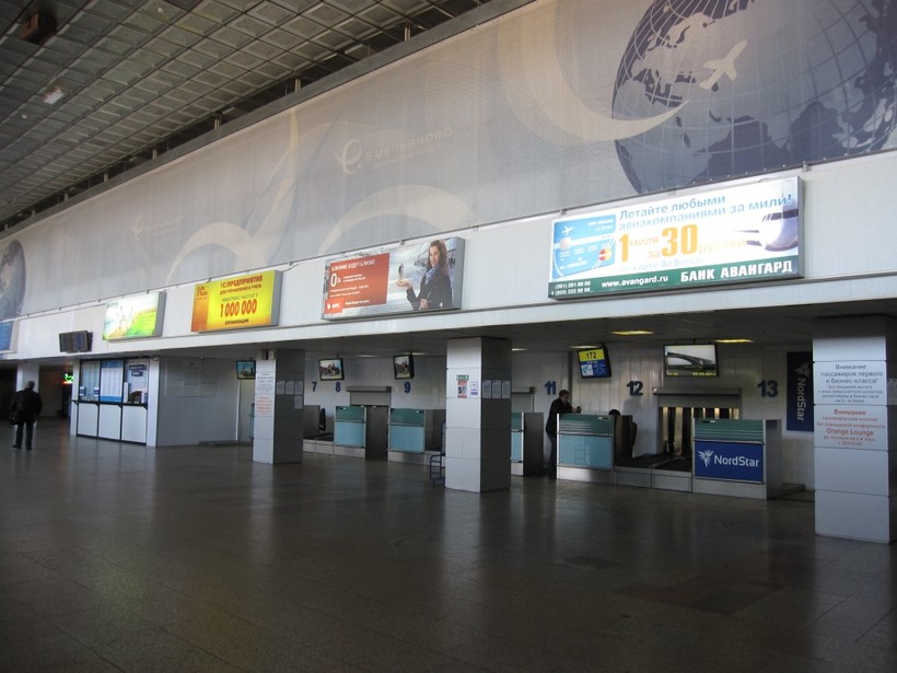 Процесс регистрации на рейс ужасный. Во-первых, здание очень маленькое, если много людей, чувствуется теснота. Во-вторых, открыто почему-то всегда по два-три окна регистрации, хотя девочки работают быстро и всегда с улыбками. Одно радует — удобные диванчики в зале ожидания. :)