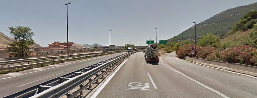 Теперь перейдем к маршруту. На данном отрезке нет платных дорог, поэтому мук выбора не будет, следует просто поехать по бесплатной автотрассе. Получив автомобиль возле терминала (обычно представитель компании со всеми необходимыми бумагами и автомобилем поджидает клиента именно здесь), следует выехать на автодорогу с шифром А29, она же Е90. Выглядит она вот так: Хотя эта дорога и бесплатная, но может дать фору некоторым платным. На ней имеется разделитель направлений движения, а также по две полосы в каждом из направлений, что делает пробки на ней маловероятными (разве что в самый пик туристического сезона, да и то вряд ли). Лично я их тут никогда не наблюдал. Дорожное покрытие хорошее на всей протяженности дороги. По бокам есть отбойники, которые не дают внезапно выбраться на дорогу диким животным и не менее диким людям. Местные жители в курсе, что тут дорога, и на нее не выходят, скот тут тоже не выпасают. Сама дорога проходит над побережьем, так что в ряде случаев, если повезет, можно даже морем полюбоваться. На подъезде к Палермо будет развилка: