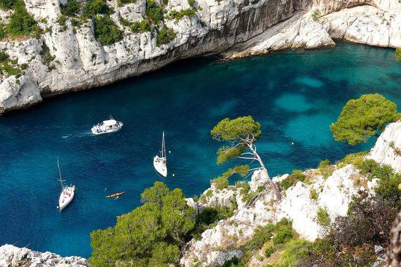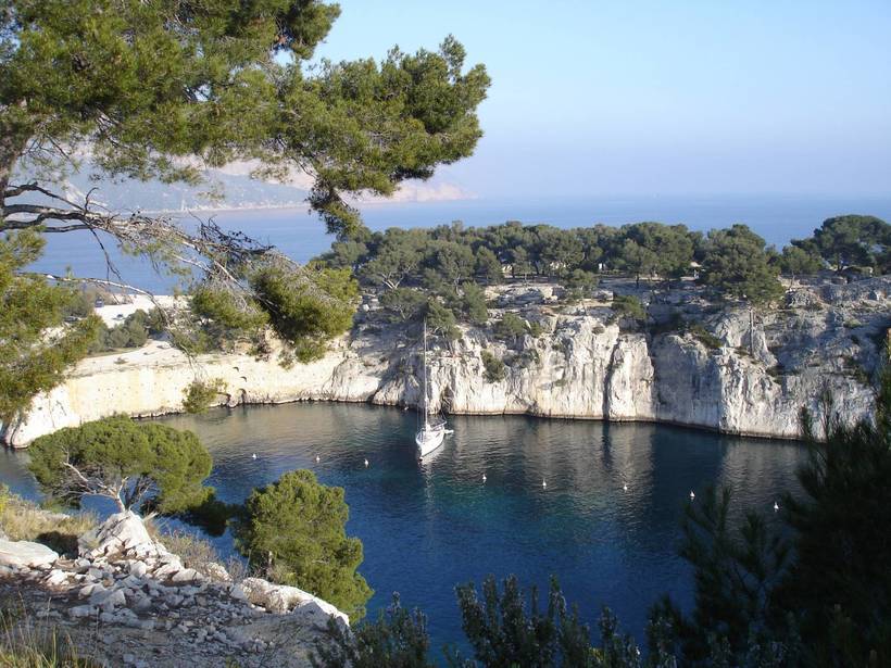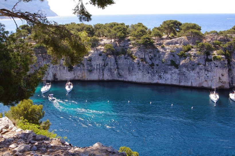 Кстати, в этих местах добывают местный известняк – кассиский камень, но это абсолютно незаметно по городу, кажется, что весь он – средоточие отдыха и наслаждения. Это такой типичный приморский городок: ставни на окнах, зелень вокруг, набережные, тенты ресторанов, чайки! Но самое главное в Кассисе – это те самые каланки, о которых нам с таким восторгом рассказывал знакомый. А я расскажу о них вам, потому что мы быстренько пообедали в ресторане на набережной и пошли в поход.