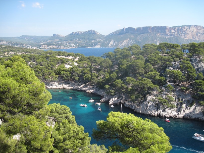Каланки или по-французски Calanques – это уникальное природное явление, которое есть только на юге Франции, возле Кассиса. Это нечто вроде очень узких скалистых бухт, которые глубоко вдаются в берег. Говорят, что ближайшая аналогия – действительно норвежские фьорды, только те на севере, а эти на юге. Я фьорды пока не видела, так что сказать точно не могу. Но поверим рассказчикам на слово:)