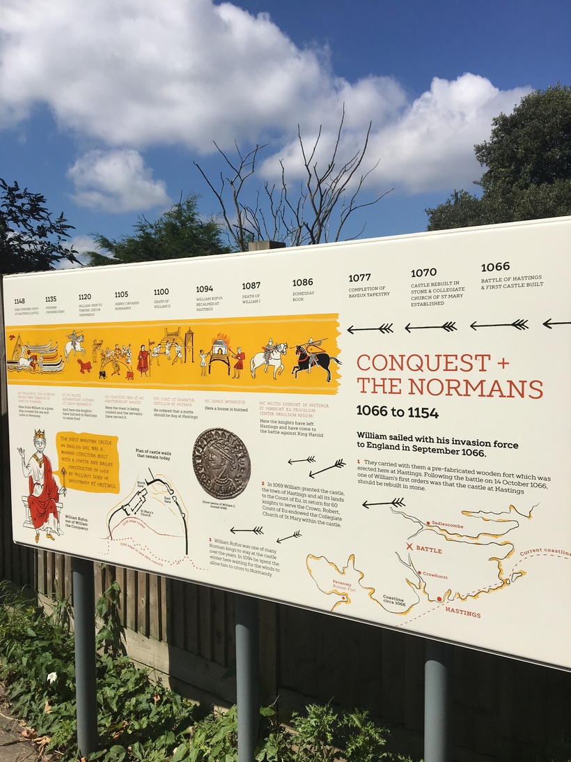 Кроме того, здесь очень много табличек, рассказывающих о замке, где в каком месте, что было расположено. Я провела здесь около часа. Замок, безусловно, главная достопримечательность города Гастингс.