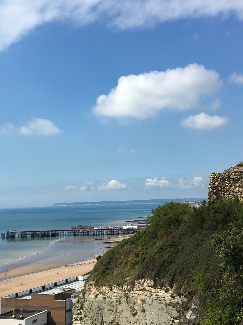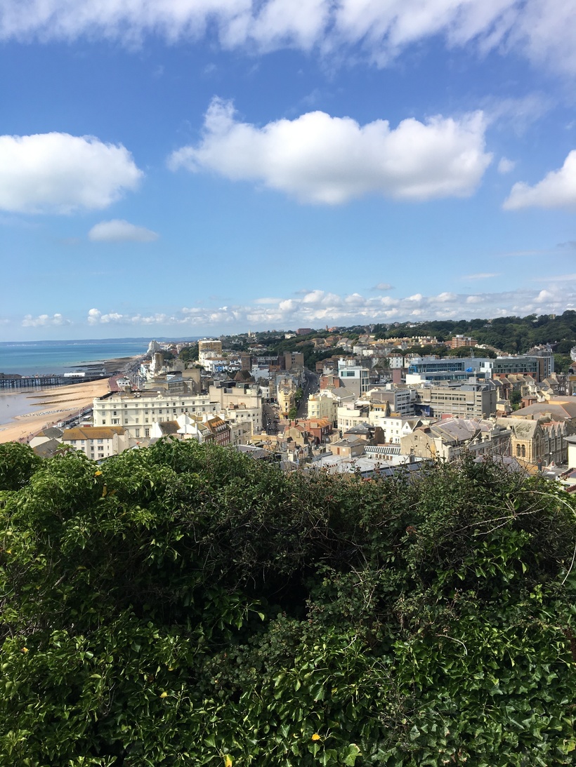 Город расположен совсем недалеко от Истборна. На электричке ехать всего 30 минут. Утром я села в поезд и поехала смотреть новый для меня город. Дорога была очень красивая, поезд шел вдоль побережья, виды открывались превосходные. Океан переливался всеми цветами синего, погода была чудесная, и я даже не заметила, как поезд приехал в Гастингс.
