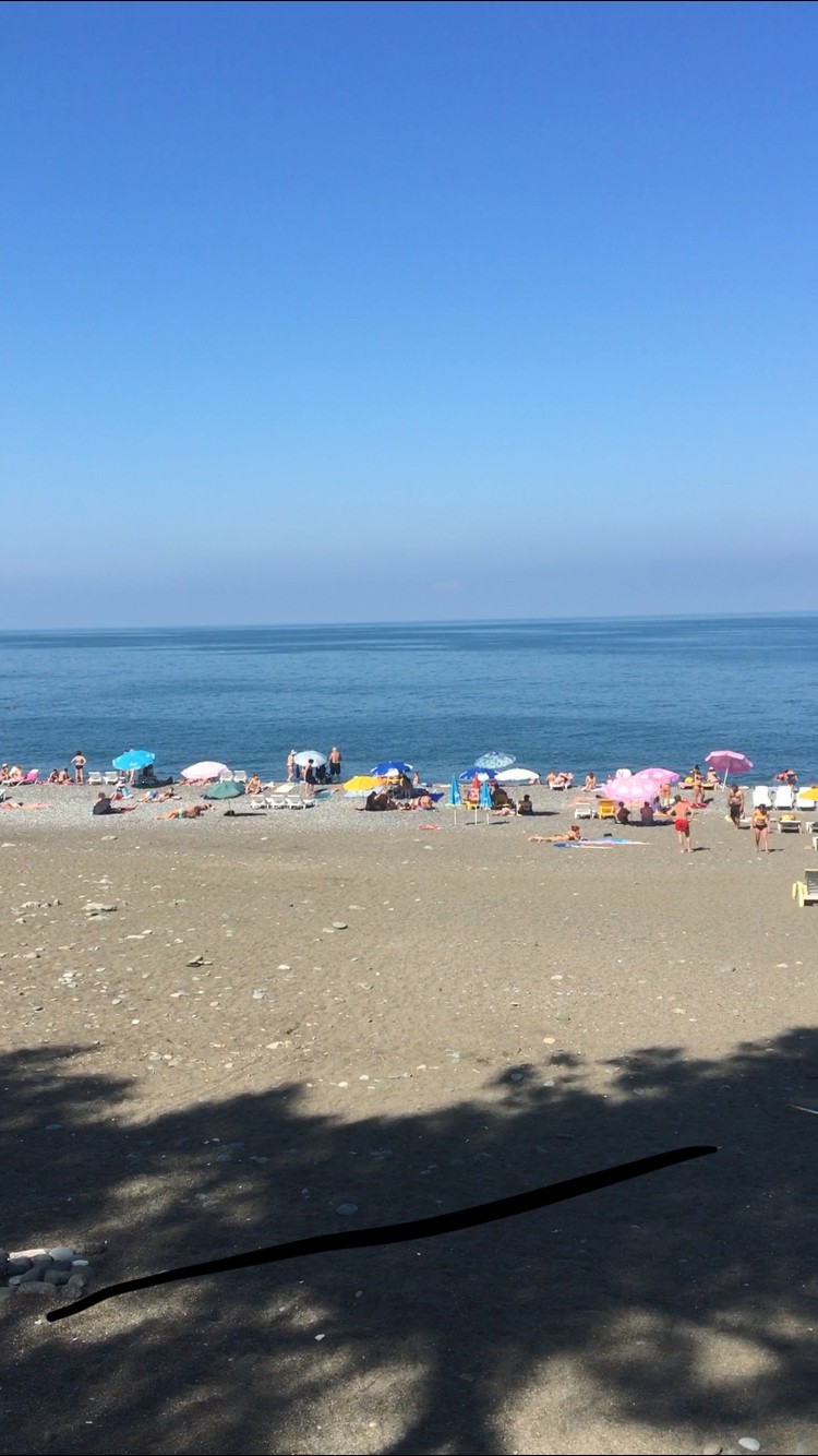 Пляж длинной в 10 км, места хватает всем, в какое время ты бы не пришел. Лежаки и зонты за символическую плату. Море чистое, пляж галечный. Природа великолепная. Атмосфера настоящей идилии.