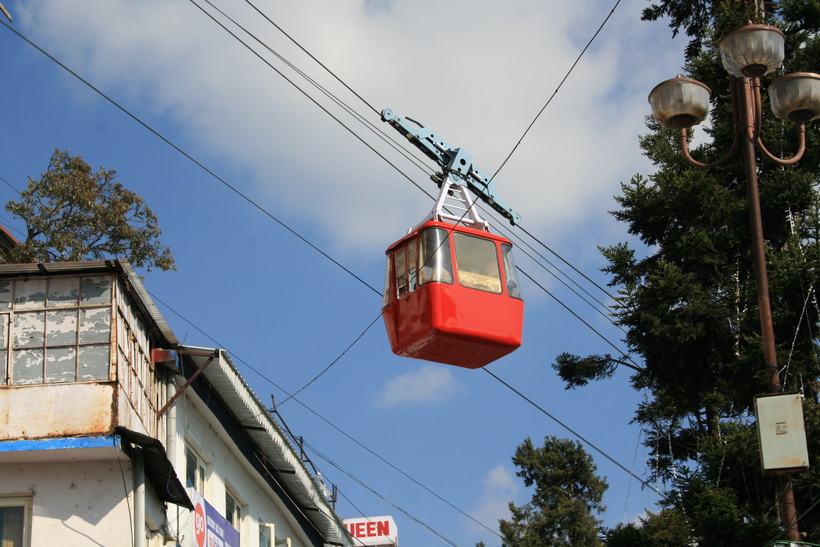 На холм я поднималась по канатной дороге протяженностью 400 метров. Канатная дорога с кабинками возникает буквально из ниоткуда на главной улице, резко поднимаясь вверх. Несколько минут подьема и вы у цели! Обязательно возьмите фотоаппарат и зарядите батарею- будет обидно, если батарея уснет в самый интересный момент! Посоветую вам брать билетик (по-моему цена 70-80 рупий туда-обратно) за 1 час до заката, вы получите незабываемые впечатления и классные снимки!