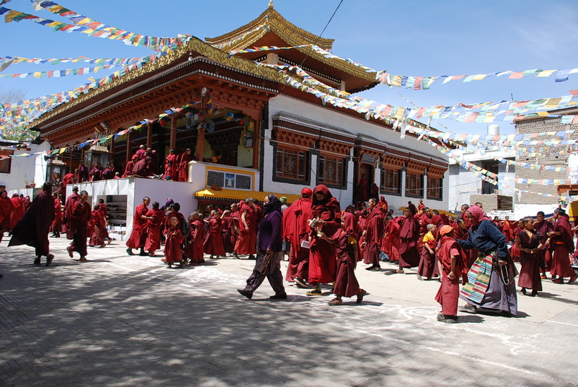 Если у вас хорошая туристическая карма, вам повезет попасть на какой-нибудь крупный буддистский фестиваль или праздник. Их всегда отмечают в Лехе с размахом – танцы, шествия, религиозные служения и карнавалы. Во время моего путешествия (начало мая) мне повезло попасть на праздник Будда Джаянти. Тысячи людей съехались со всей провинции, тысячи учеников и монахов из десятков окрестных монастырей заполонили город и на главной площади перед замком Лехских правителей устроили выступления.