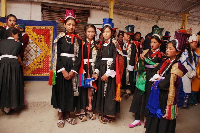 Участницы концерта в национальных нарядах ладакхцев
