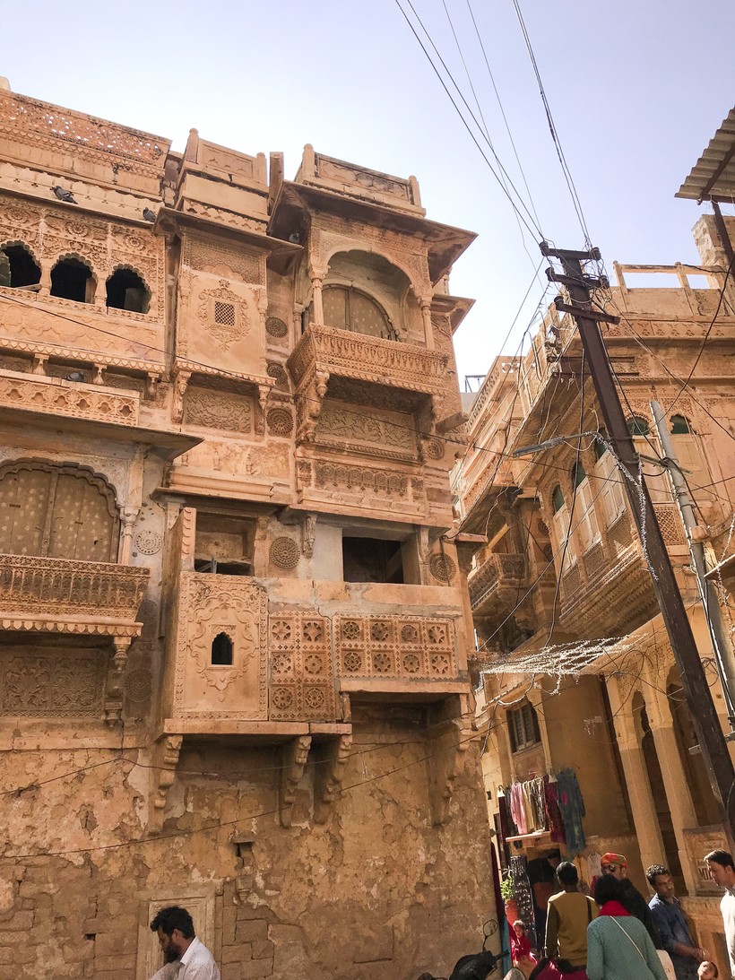 Это не просто форт с музеем внутри, это, так сказать, «живой» форт. Здесь такие же узкие улочки, торговые лавочки, магазины и жилые дома, а также большое количество храмов. Со стен форта открывается красивый вид на город.«Чувствуешь силу Джайсалмера, Янка?»- спросил у меня Андрей. И знаете, да. Смотря на город, окружённый бескрайней пустыней, понимаешь, насколько он велик и силен!