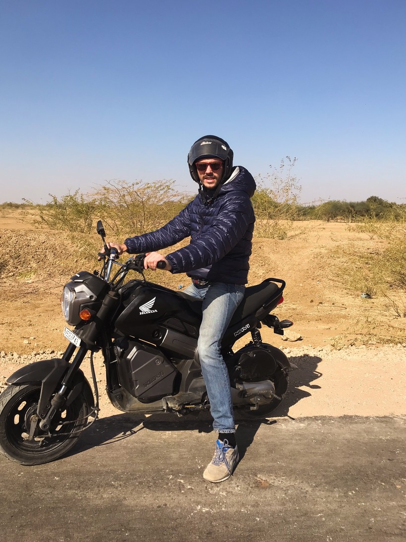 В Джайсалмере огромный выбор мест, предоставляющих в аренду байки. Я остановилась на Shiva bikes и выбрала футуристического малыша Honda Navi за 400 рупий. К нему прилагались 2 шлема, хотя один из них тяжело назвать шлемом, конечно. Как только сделка состоялась, мы с мужем рванули на встречу с Великой индийской пустыней.