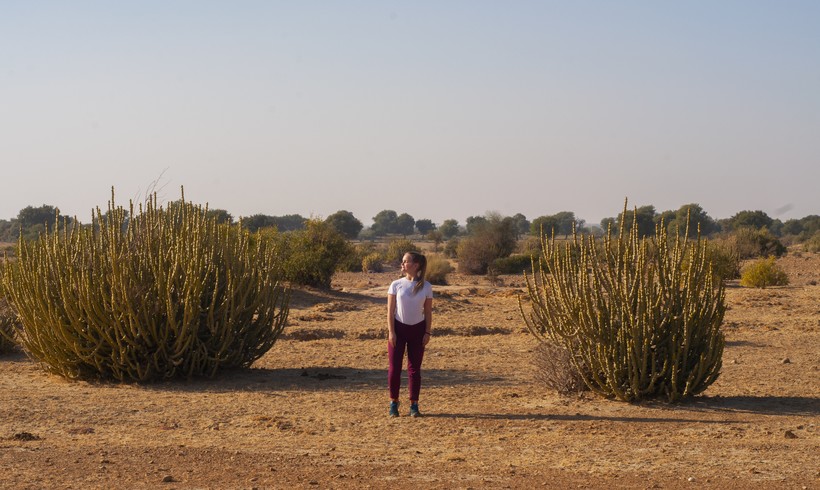 Здесь не совсем такая пустыня, как в нашем воображении, но это не имеет никакого значения. Она всё равно влюбляет в себя с первых секунд. Я неслась на байке и любовалась песчано-каменистыми просторами с редкой растительностью и пустынными жителями.