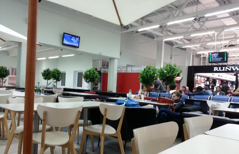 - кофейни, кафе, даже пивные рестораны как в залах регистрации на рейс, так и уже после предполетного досмотра;