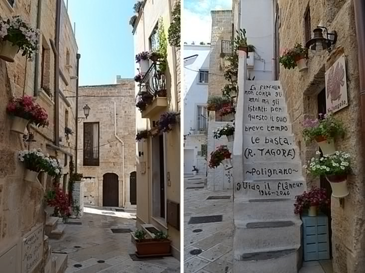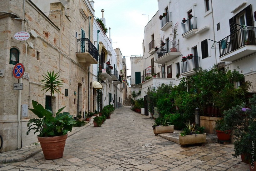 Верхняя часть Полиньяно это маленькие заковыристые итальянские улочки, дворики, белые домики, красивые площади и величественные католические храмы.