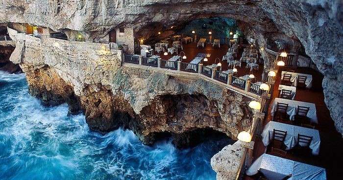Обязательно стоит посетить, или хотя бы просто посмотреть, пещерный ресторан Grotta Palazzese, в гроте скалы. Это просто место мечты для всех истинных романтиков!