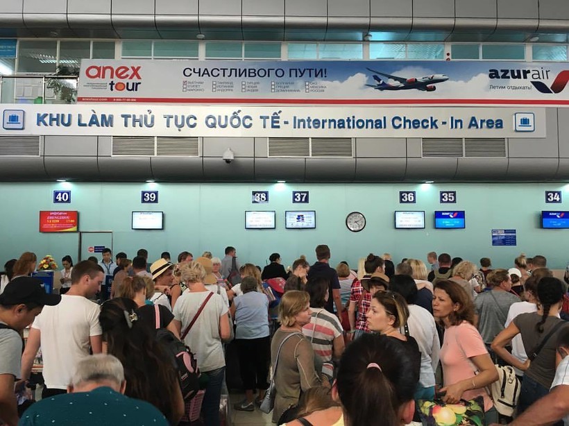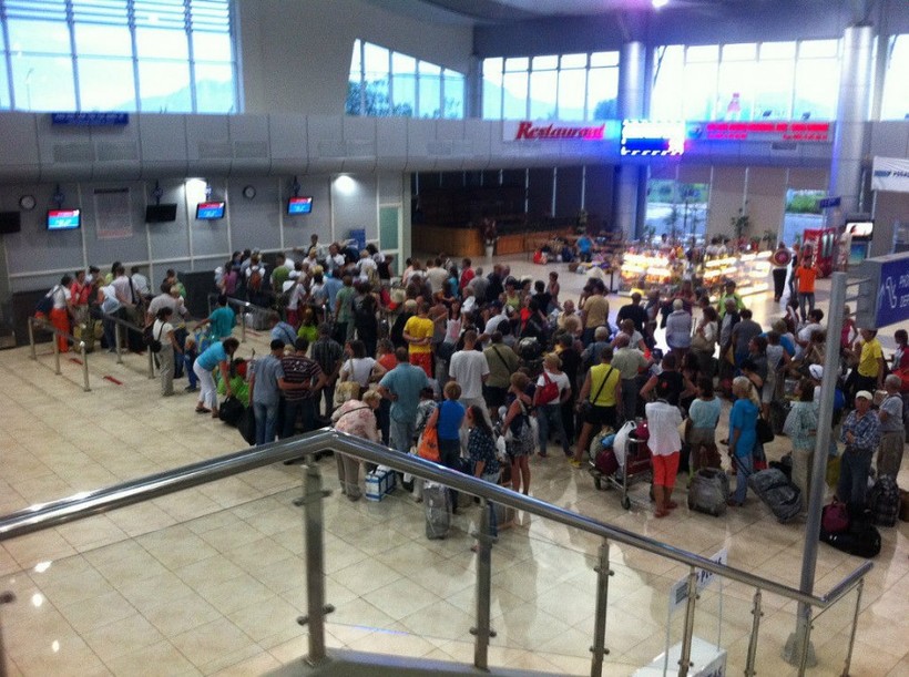 На регистрации меня поджидала еще одна маленькая проблема — очередь. Из-за небольшого количества регистрационных стоек, иногда количество туристов собирается запредельное. Потому, приезжать в аэропорт Камрань лучше заранее.